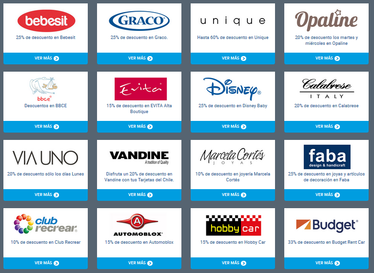 A continuacion le acercamos las ofertas, beneficios y promociones de descuentos abonando sus compras con las tarjetas de credito del Banco de Chile