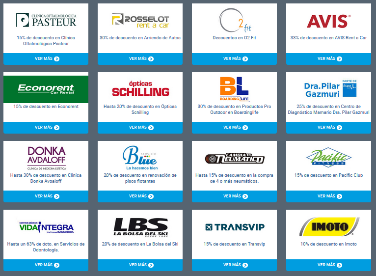 Lo que hace que el Banco de Chile sea tan atractivo para muchos clientes es que puedes disfrutar de descuentos muy buenos en consumos de productos y servicios de manera muy permanente, lo cual hace que la tarjeta de crédito que usas, más que un instrumento de pago y financiamiento, una posibilidad de múltiples descuentos durante el mes. Con solo acceder al portal web del banco, te darás cuenta la inmensa cantidad de beneficios que tienes en establecimientos comerciales –al estilo ecommerce— en todas las categorías como vestuario, calzados, entretenimiento, salud, belleza, gastronomía, servicios, hogar, equipos electrónicos, entre otros.